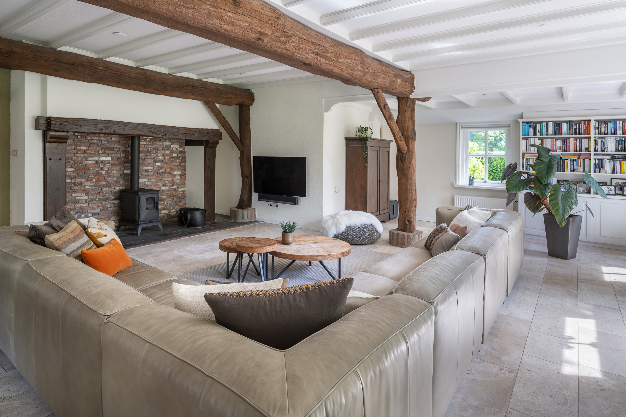- Royale woonkamer met haard;