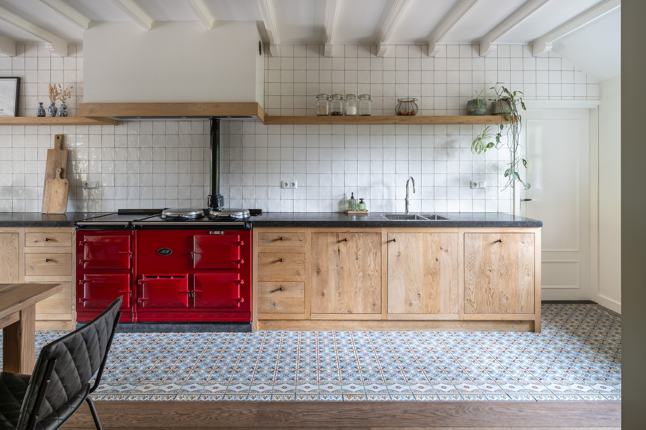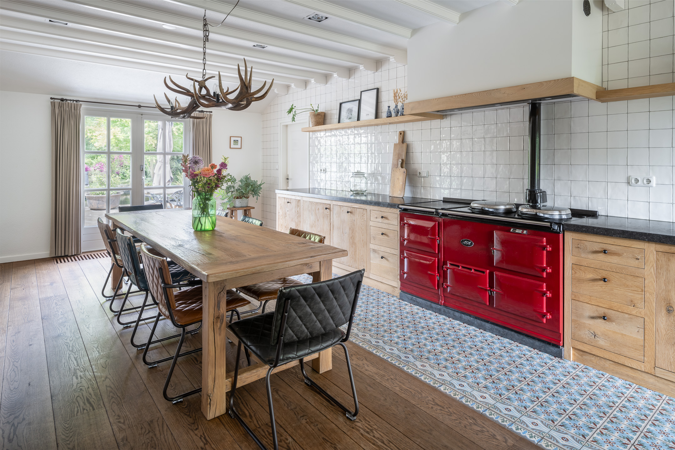 - Woonkeuken met openslaande deuren naar de tuin;