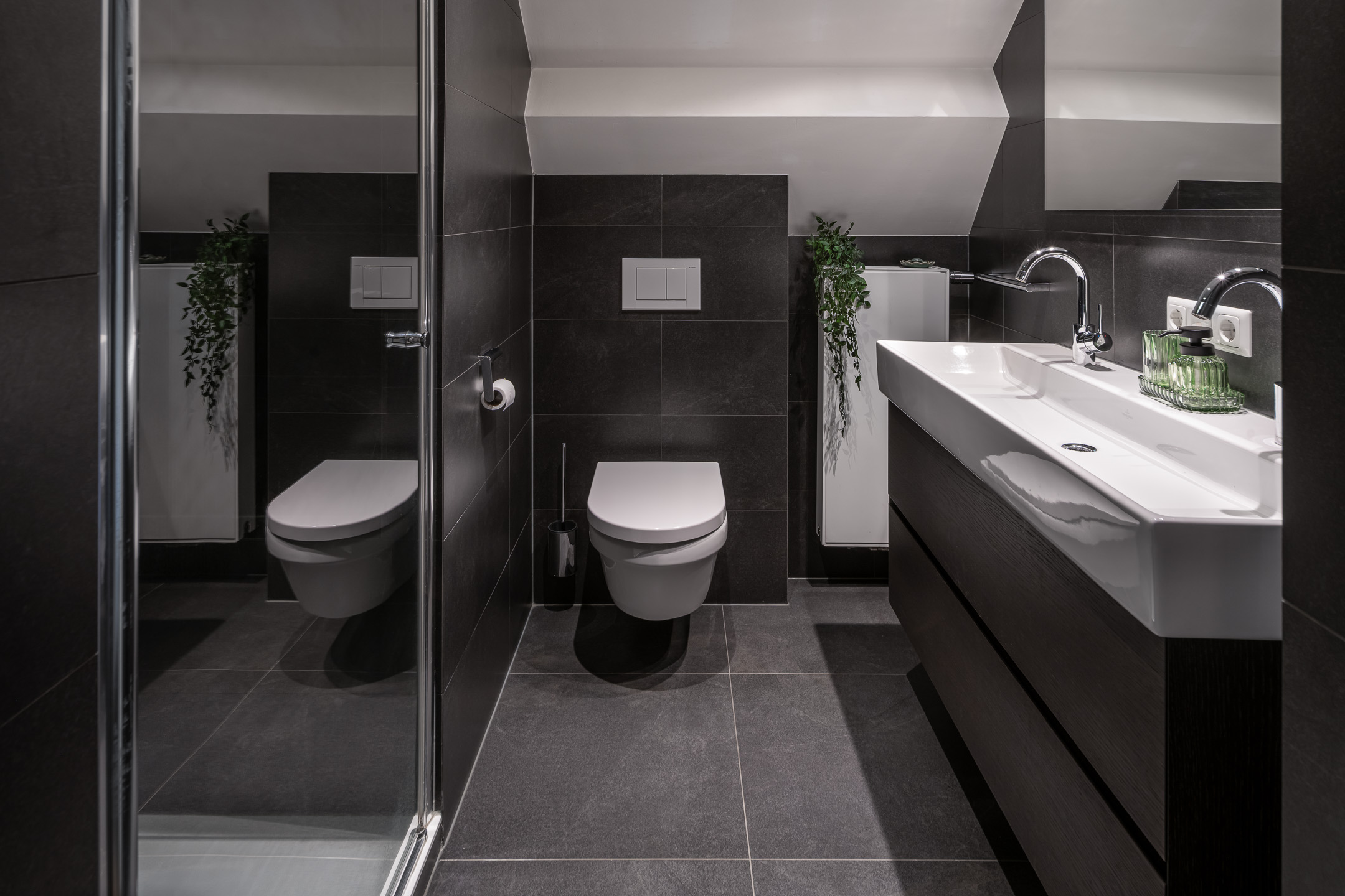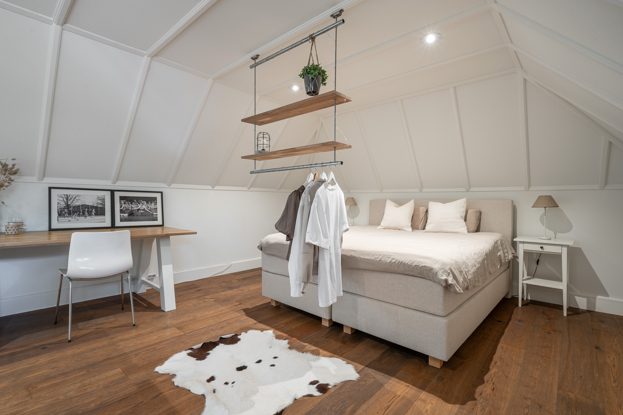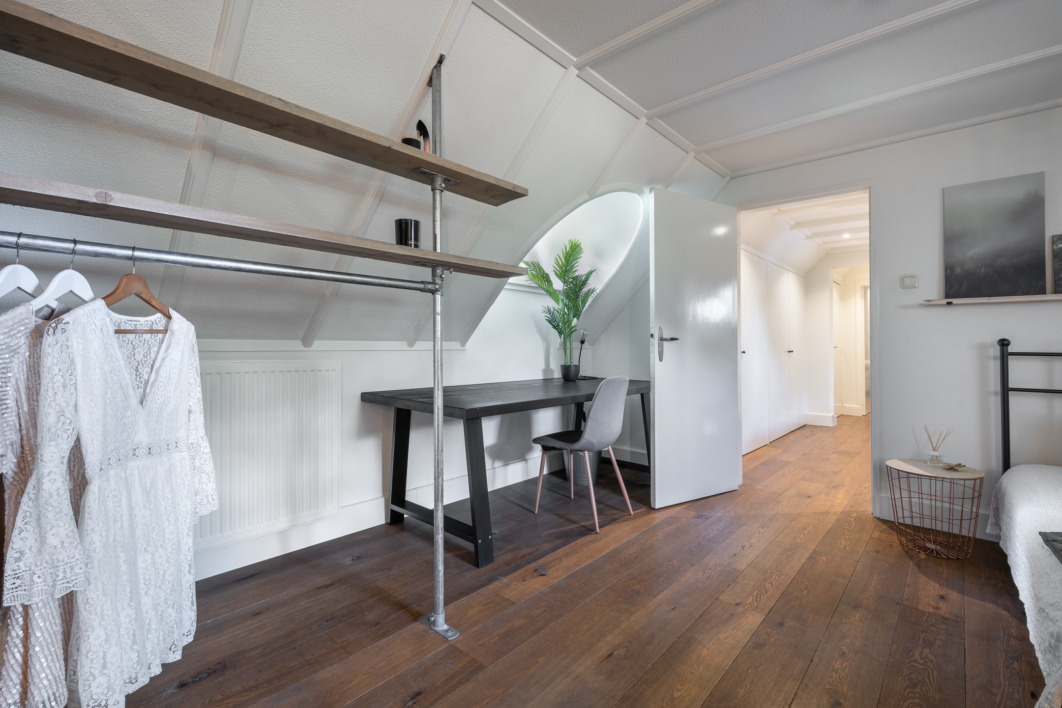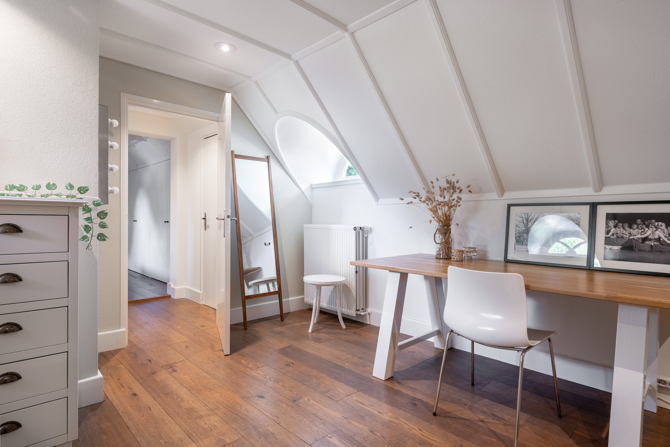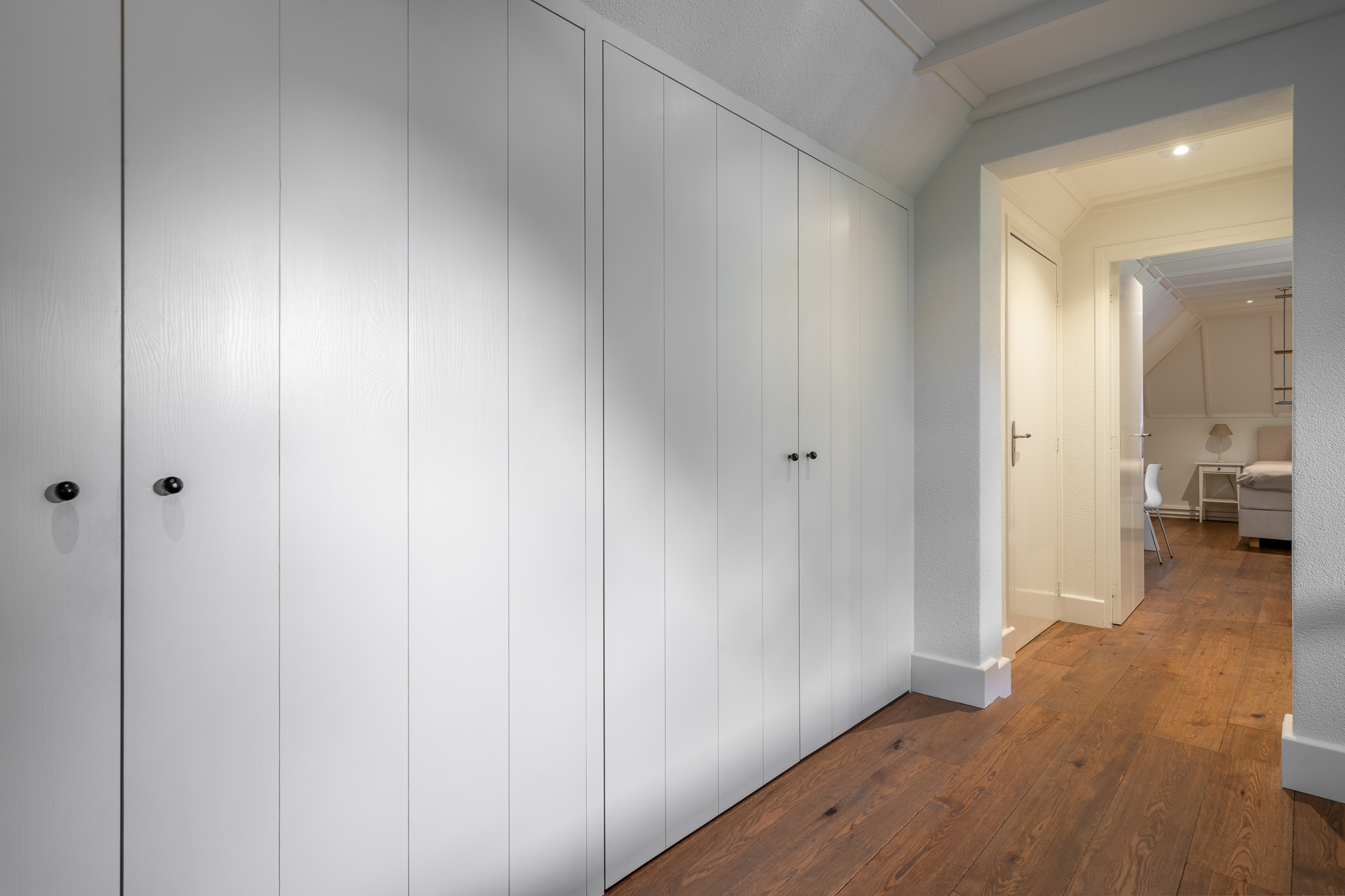 De bovenverdieping is even indrukwekkend, met in totaal drie slaapkamers en twee badkamers (waarvan 1 slaapkamer met badkamer als logeerkamer kunnen fungeren). En met een kastenwand op de overloop is hier een zee aan ruimte en mogelijkheden.