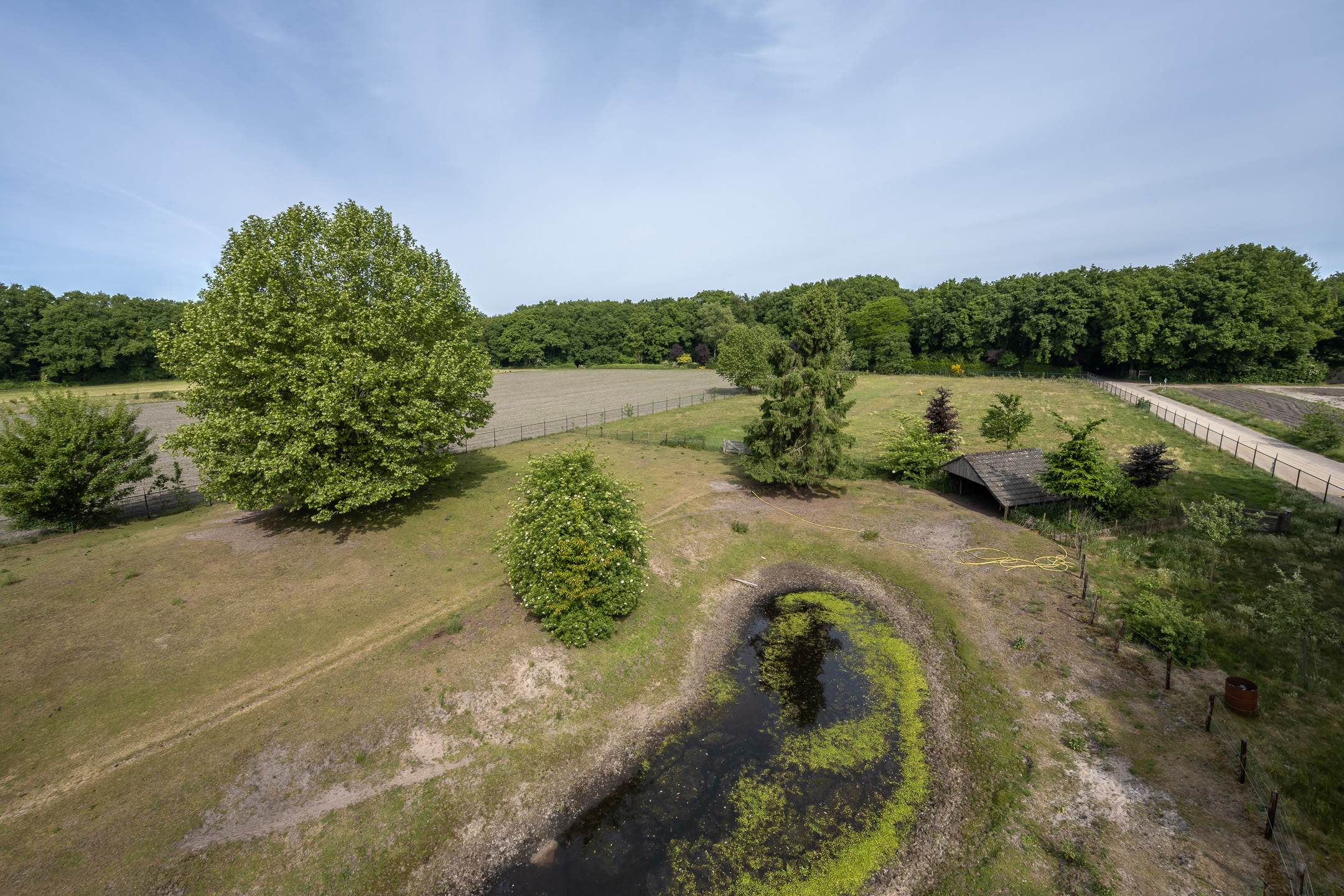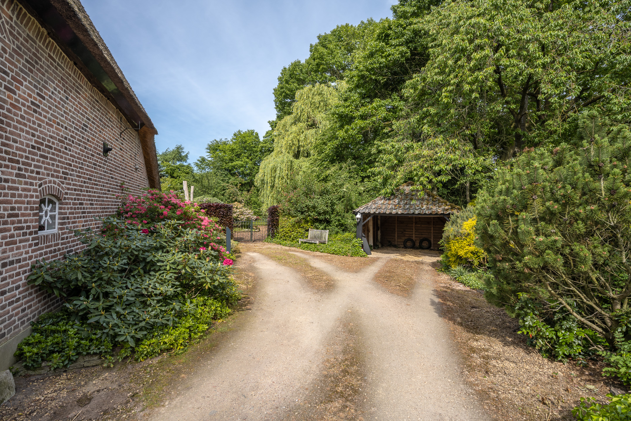 Een prachtig buitenleven met parkachtige tuin (met grote volwassen bomen), een vijver, het terras met vlonder en de weilanden. Een bijgebouw met paardenstallen, berging en overkapping liggen aan de achterzijde van het perceel. Hier bevinden zich ook de fruitboomgaard en de moestuin. Er is een natuurvijver in het weiland en niet te vergeten de schuilhut voor de dieren in de wei. Aangrenzend het weiland welke volledig omheind is en direct grenst aan het natuurgebied Bedafse Bergen. Een oud bakkershuisje dient als kippenschuur en de authentieke waterput zijn en de diverse zitgelegenheden zorgen voor een unieke plek.