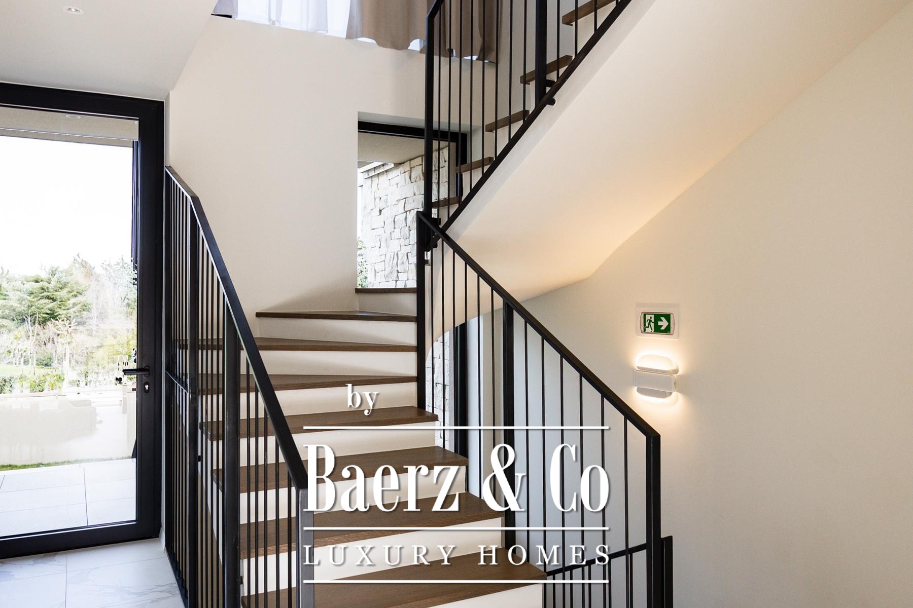 De indeling van de villa is afgestemd op een perfecte balans tussen comfort en functionaliteit. Het souterrain beschikt over een hal, entertainmentruimte, twee slaapkamers, een badkamer, berging en technische ruimtes. Op de begane grond bevinden zich twee extra slaapkamers, twee badkamers, veel bergruimte en toegang tot het balkon. Op de eerste verdieping vormt een lichte open woonkamer met keuken en eetruimte een geheel met een ruim terras, wat uitnodigt tot ontspannen buitenleven en panoramisch uitzicht.