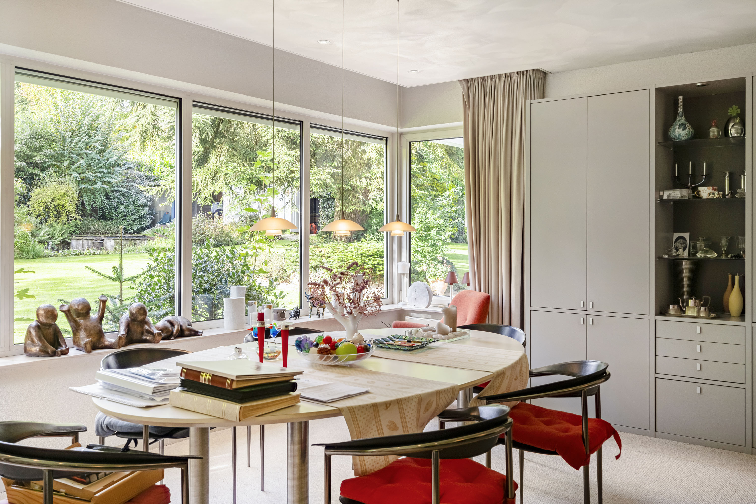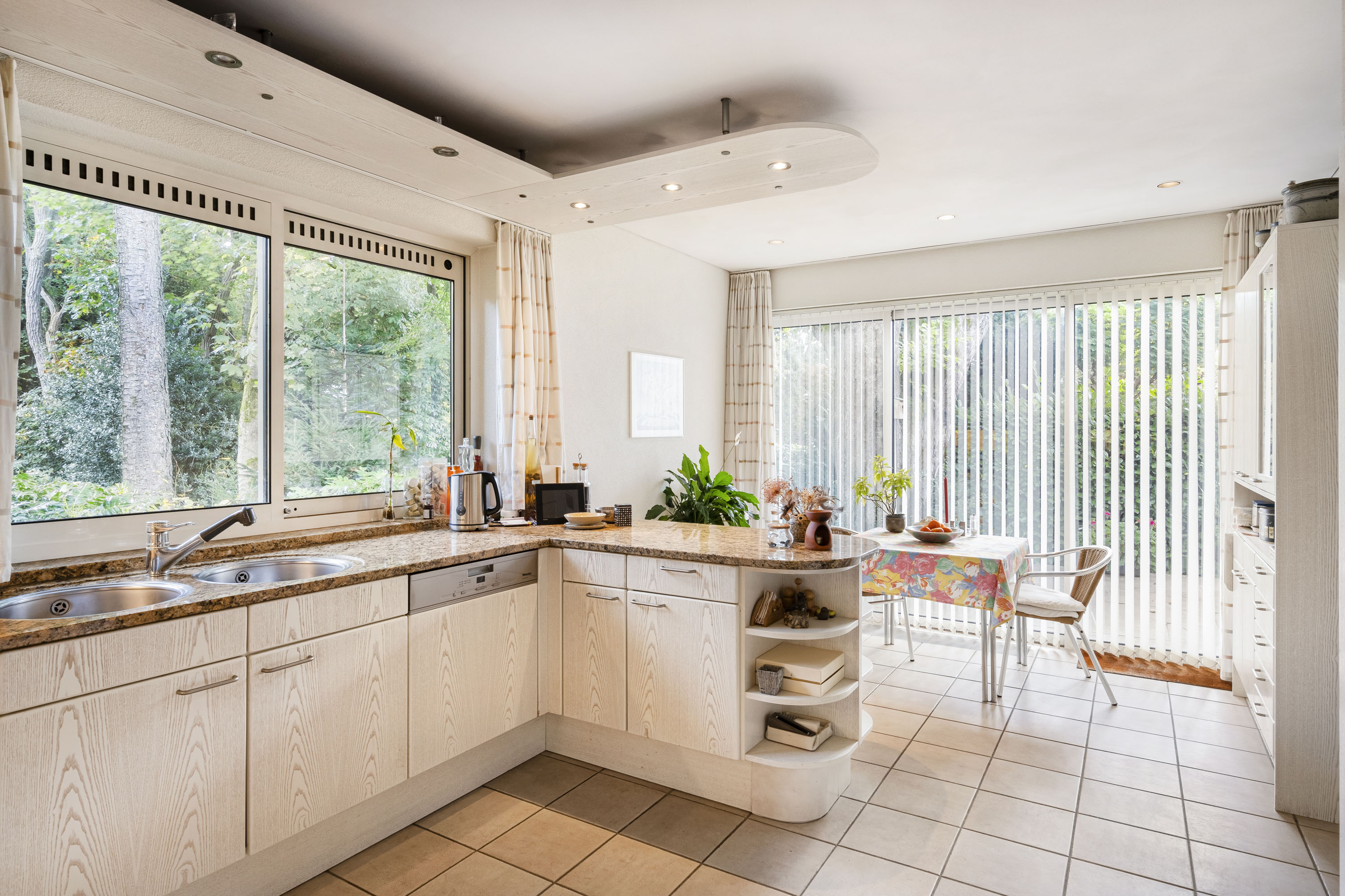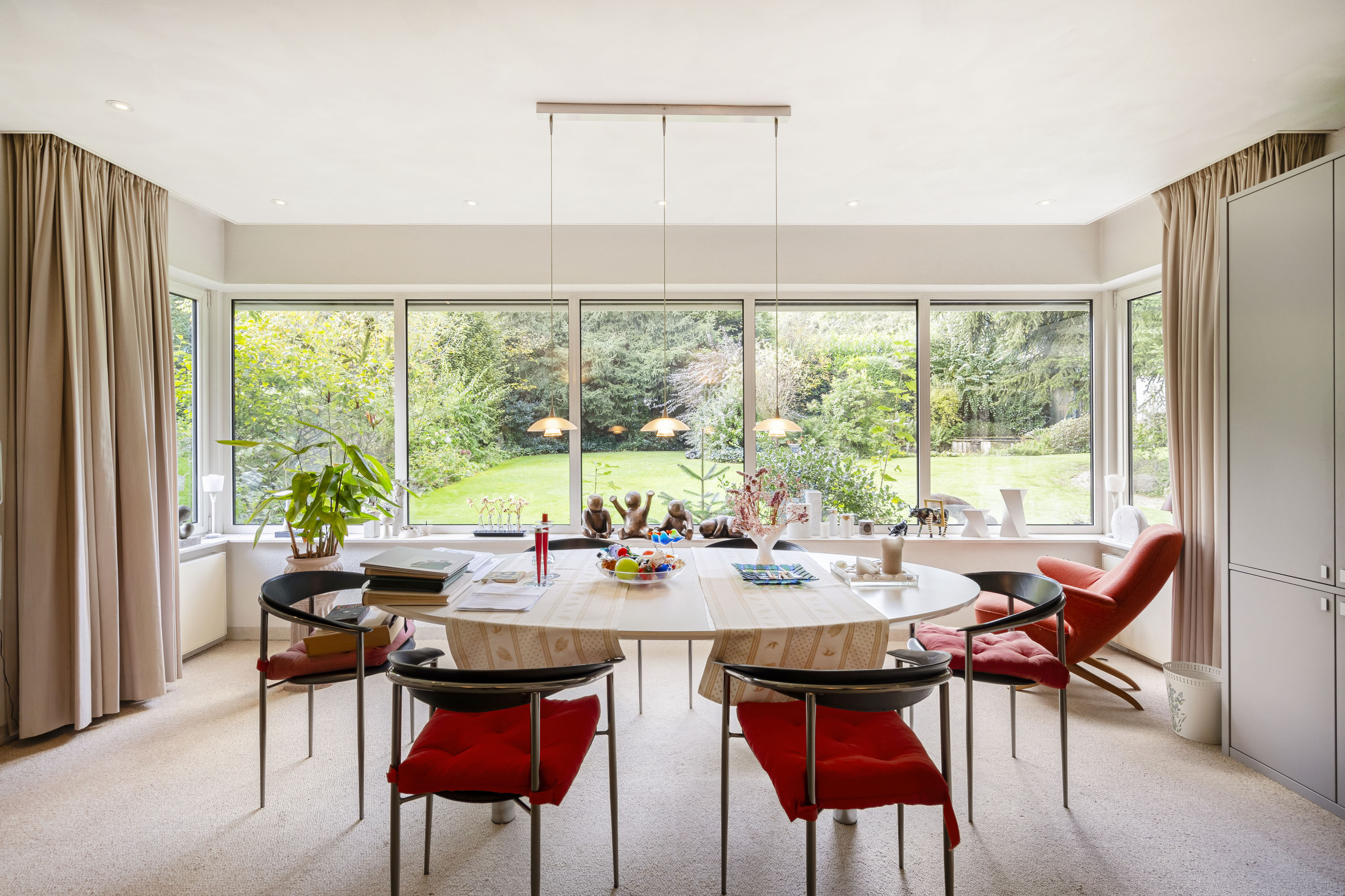 In alle rust en met veel privacy geniet u hier intens van de ruimte, de fantastische tuin en de prachtige architectuur van dit huis. De woning is gelegen direct aan de voet van de Posbank en aan de rand van een gezellige woonwijk, op enkele minuten afstand van het centrum van Velp met tal van voorzieningen. Ook de uitvalswegen bereikt u snel en de luchthavens Düsseldorf en Amsterdam zijn in circa een uur bereikbaar.