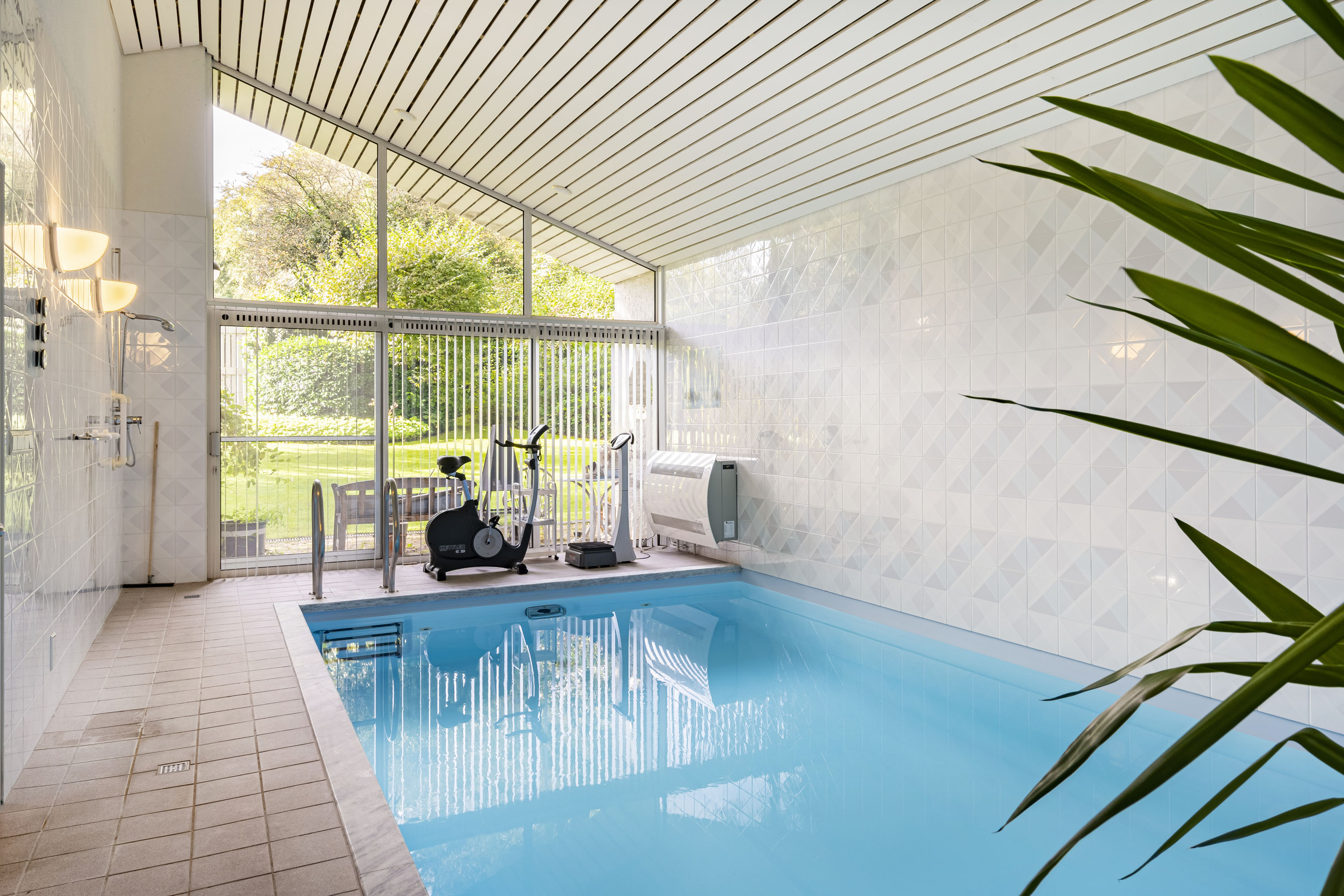 Via de opgang is er toegang tot de ruime entree. Vanuit de ruime hal is er toegang tot alle vertrekken op deze verdieping. Zo zijn er 4 slaapkamers, 2 badkamers en een zwembad. Het zwembad beschikt over schuifpui naar de tuin, zodat daar ook heerlijk genoten kan worden van de natuur.