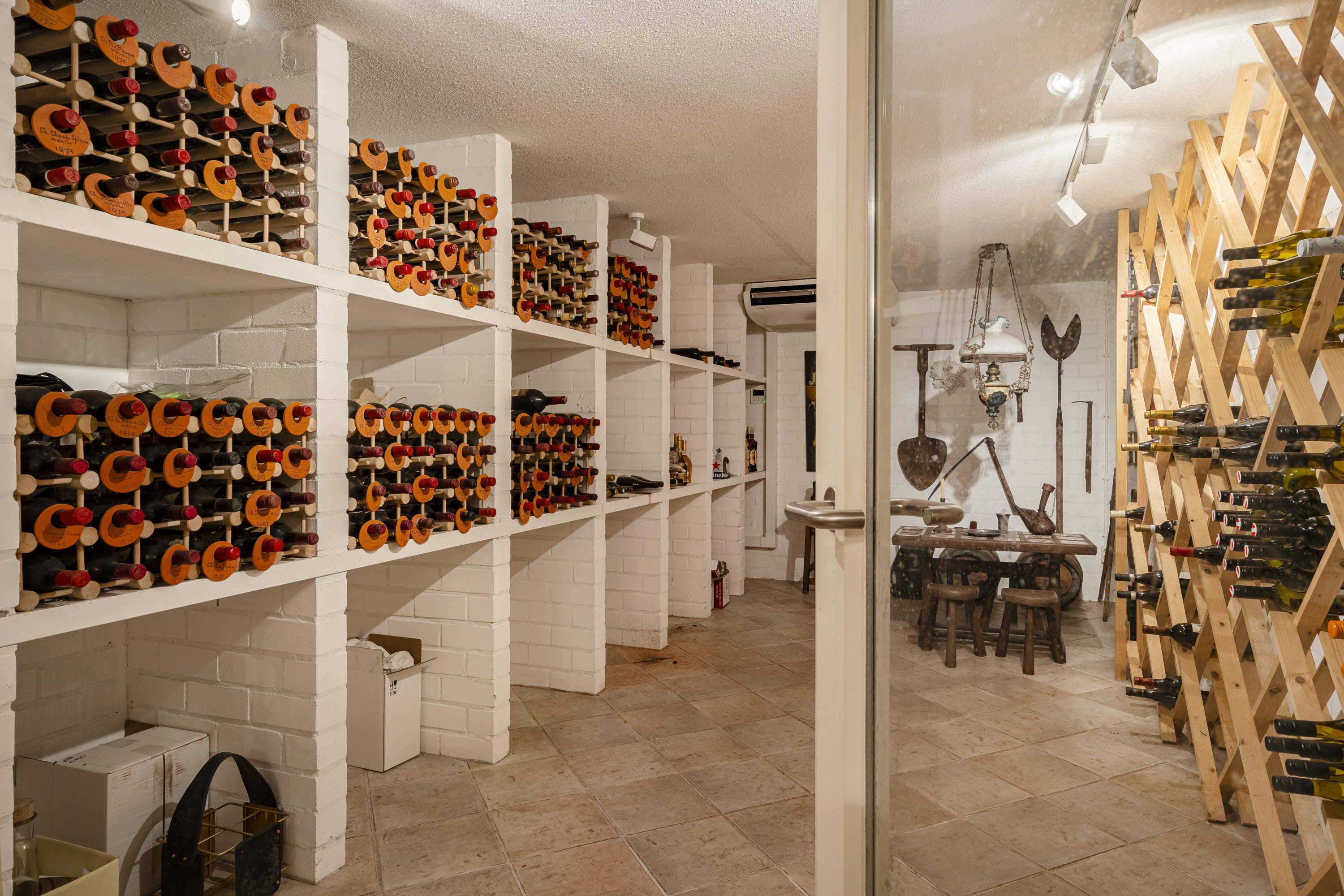 Dit ruime souterrain beschikt over een ruime garage met plek voor 2 auto's. Verder is de garage voorzien van een elektrische deur en een laadpaal voor een elektrische auto. Daarnaast is er een prachtige wijnkelder, diverse bergruimtes, een technische ruimte met o.a de warmtepompen voor de woning en het inpandige zwembad met jetstream. Vanuit het souterrain is voor bewoners de toegang tot de woning.