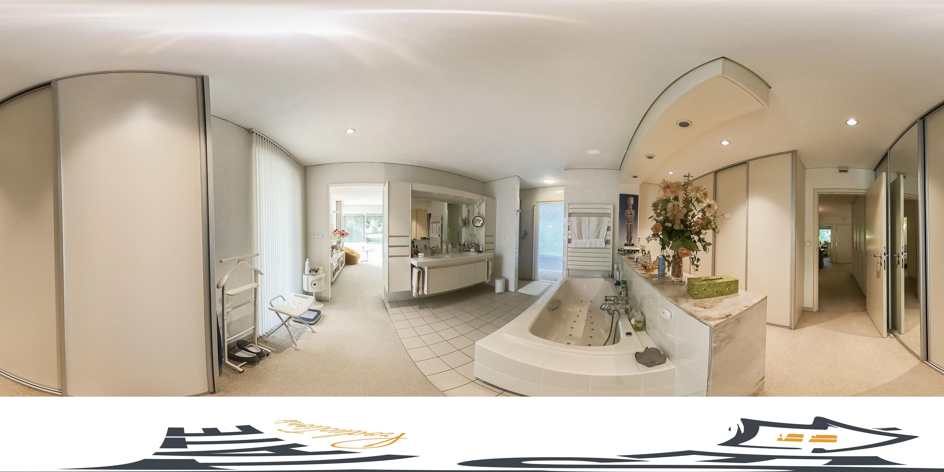 De badkamers beschikken over een wastafel, douche en de royale badkamer over een extra ligbad en 2e toilet. De masterbedroom is gesitueerd aan de tuinzijde van de woning en is voorzien van veel kastruimte en airco.